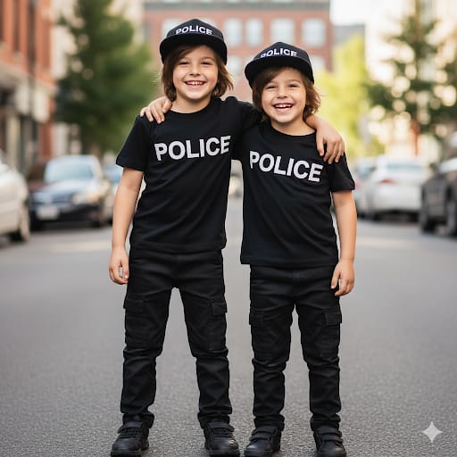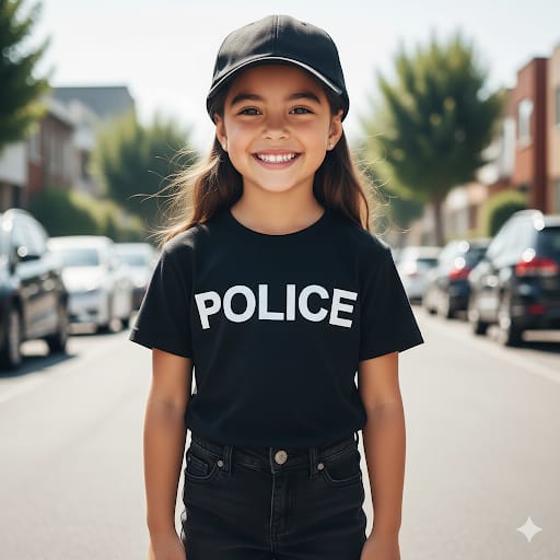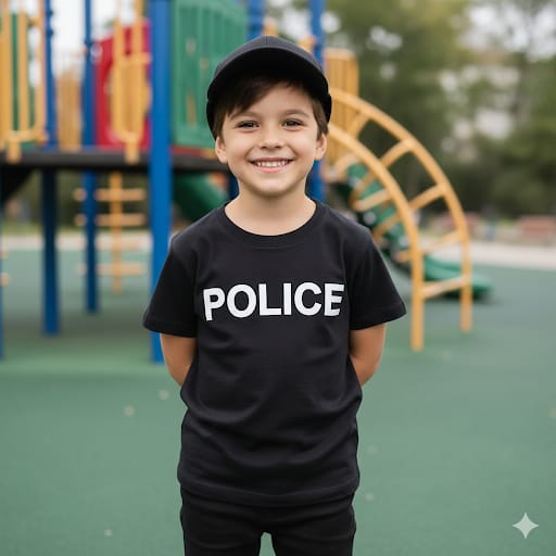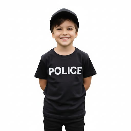A Camiseta Infantil de Policial é perfeita para fantasias, festas temáticas ou brincadeiras de faz de conta. Produzida em malha 100% algodão, na cor preta, ela oferece conforto e respirabilidade para as crianças se divertirem com liberdade.