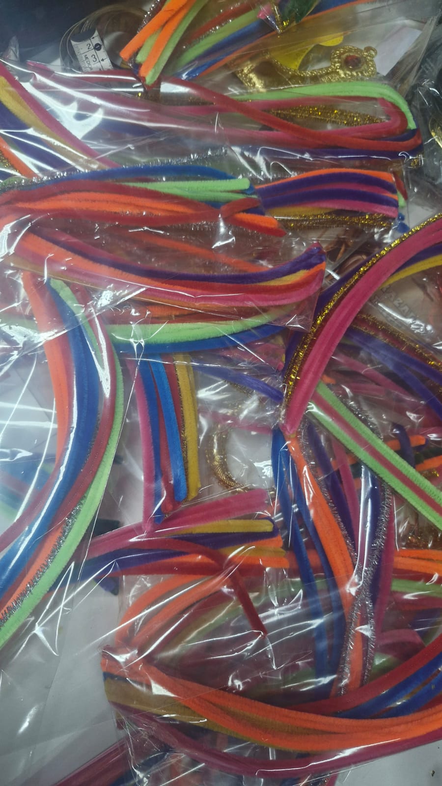 Feitas com arame maleável revestido de pelúcia, são leves, seguras e fáceis de modelar, podendo ser torcidas, enroladas ou moldadas de várias formas para compor o visual mais engraçado e criativo da festa.